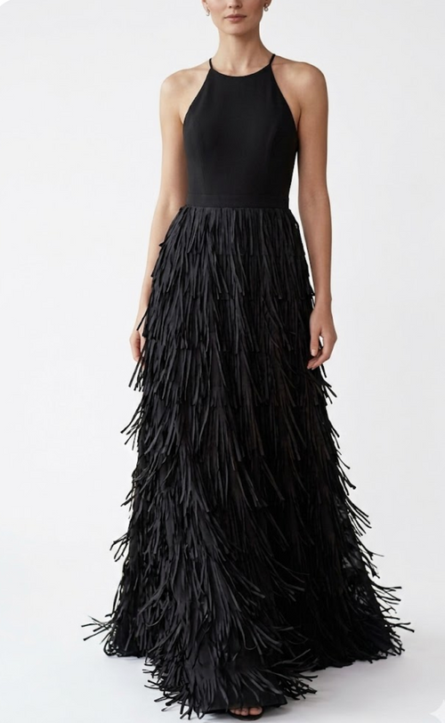 Aidan Mattox Black Fringe-Tiered Evening - 30517
