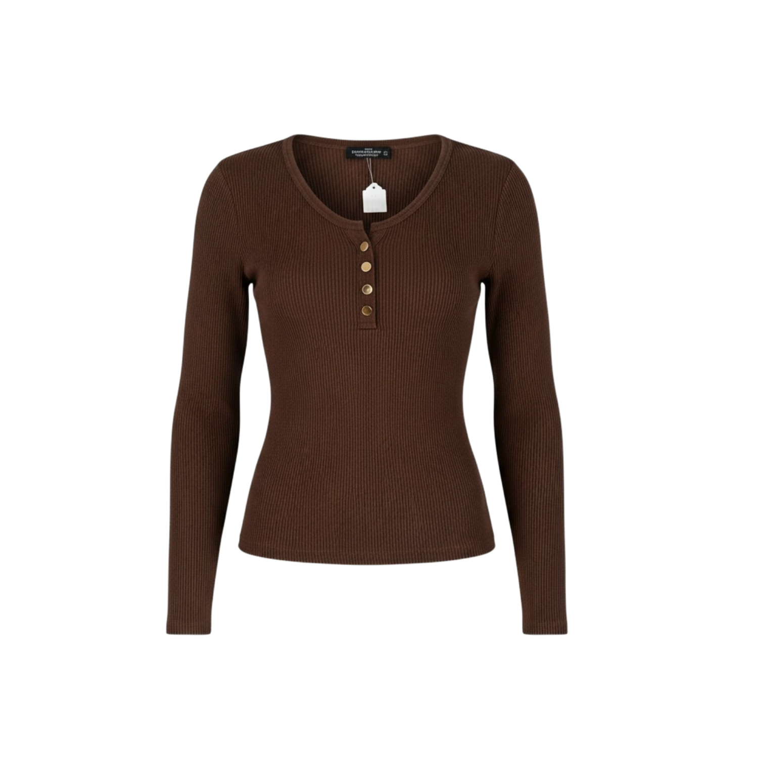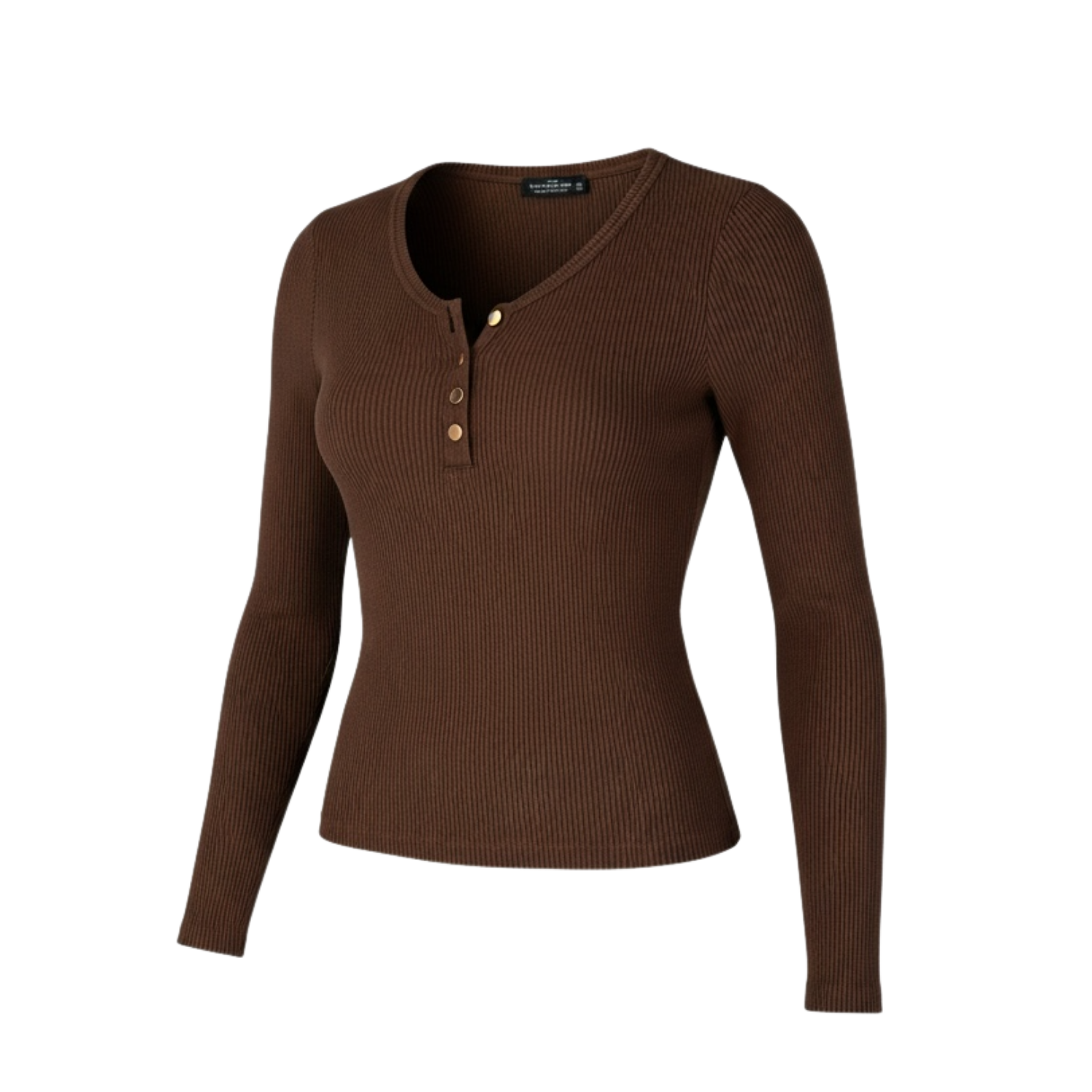 Camibuso café moka acanalado manga larga botones champaña - 30877