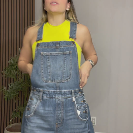 Timeless denim overalls crafted from durable yet comfortable fabric in a classic blue wash. Designed with adjustable shoulder straps, a front chest pocket, and functional side and back pockets for everyday practicality. Features a relaxed, straight-leg fit with cuffed hems for a modern, casual look.