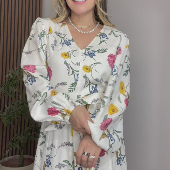 Elegant floral midi dress by Elie Tahari, featuring a soft ivory base with romantic multicolor floral print. Designed with a flattering V-neckline, long sleeves, and a flowy A-line silhouette that moves beautifully with every step. Includes a matching self-tie belt to define the waist and enhance the figure.