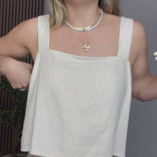 Cropped linen top featuring wide straps and a clean square neckline for a modern, effortless look. Designed with a relaxed, flowy silhouette that offers comfort and breathability. Crafted from lightweight linen fabric, perfect for warm-weather days. Easy to style with high-waisted skirts, pants, or shorts for a chic, minimal outfit.