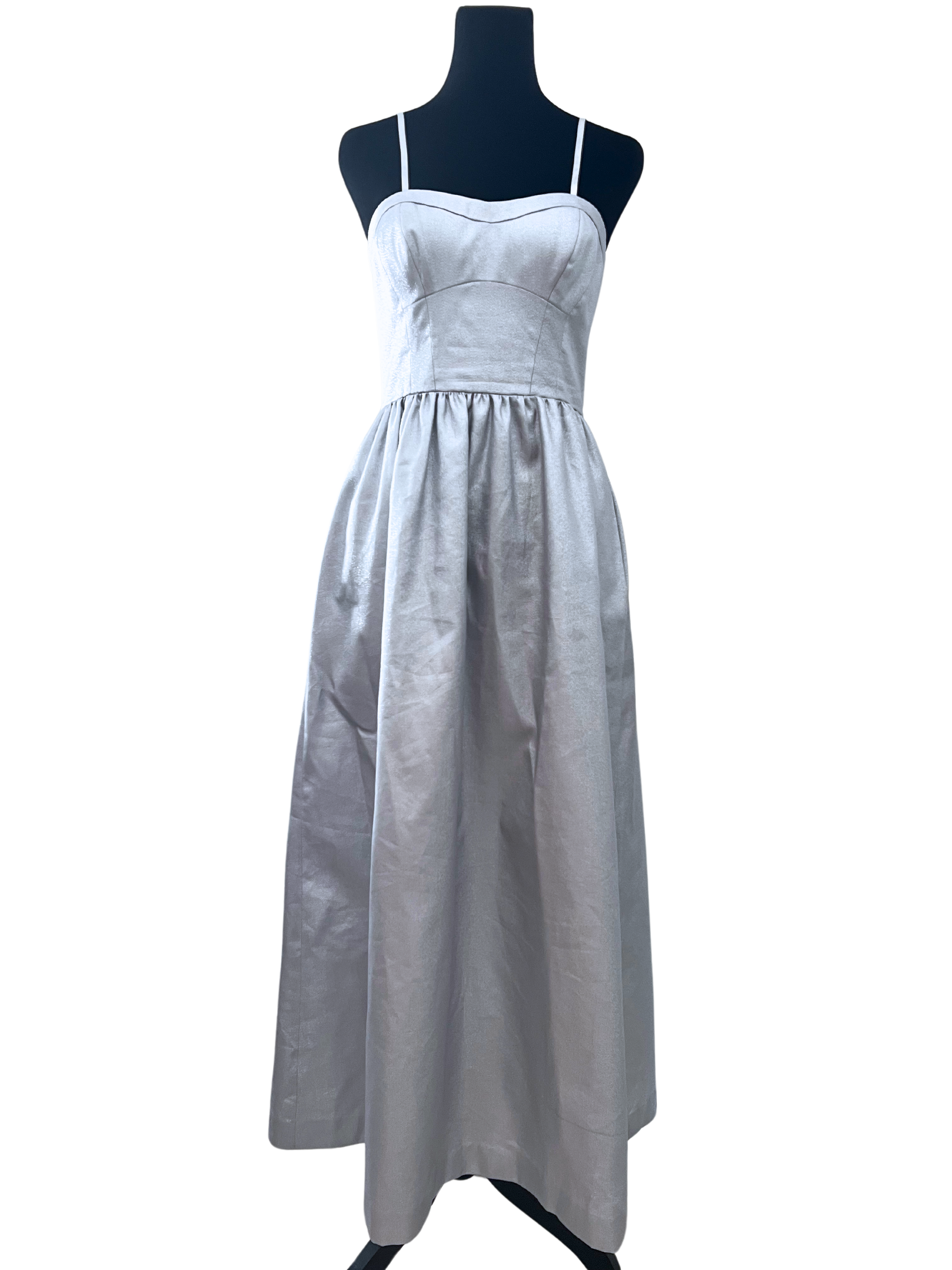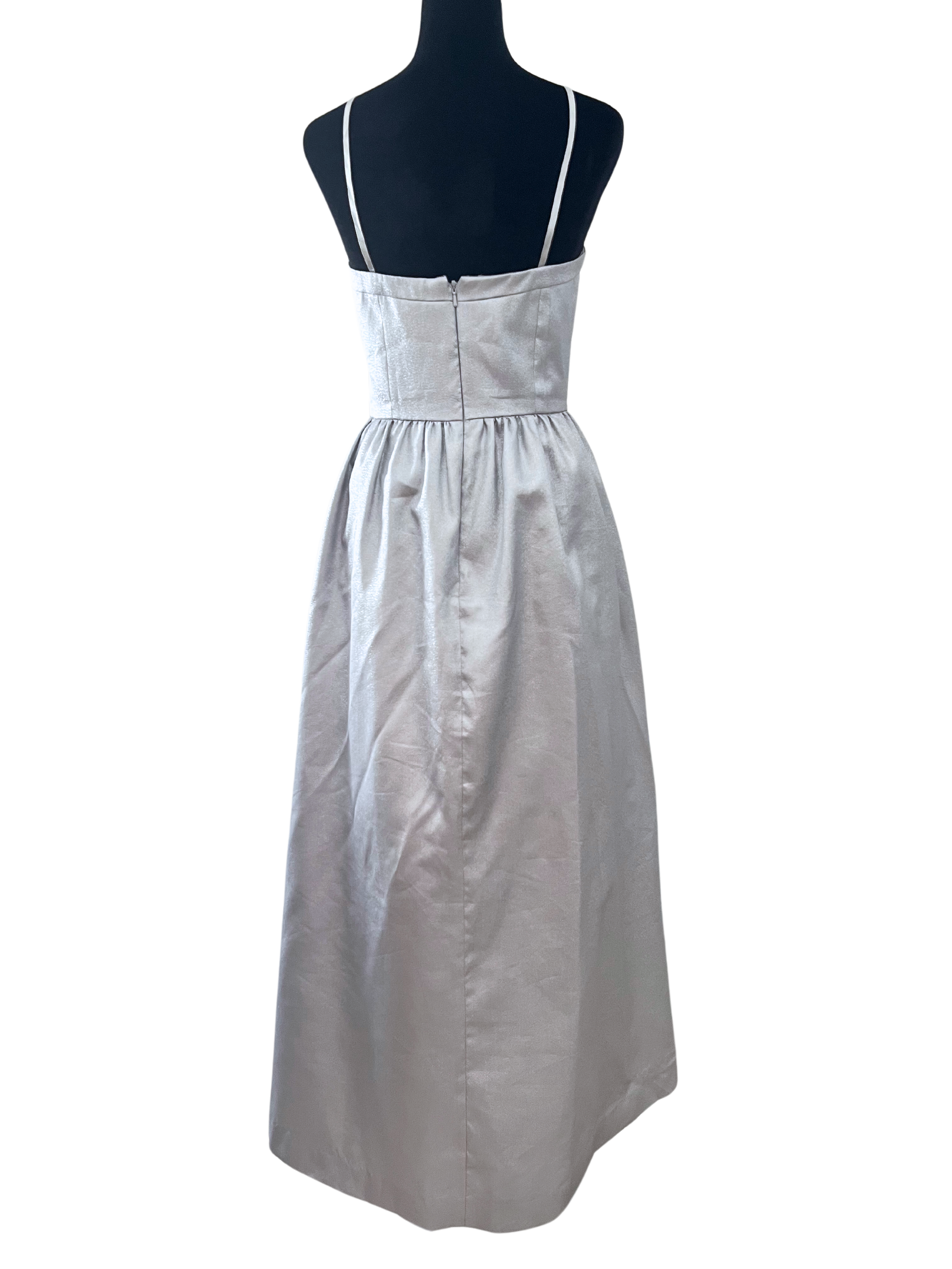 Vestido midi plateado se puede usar strapless.