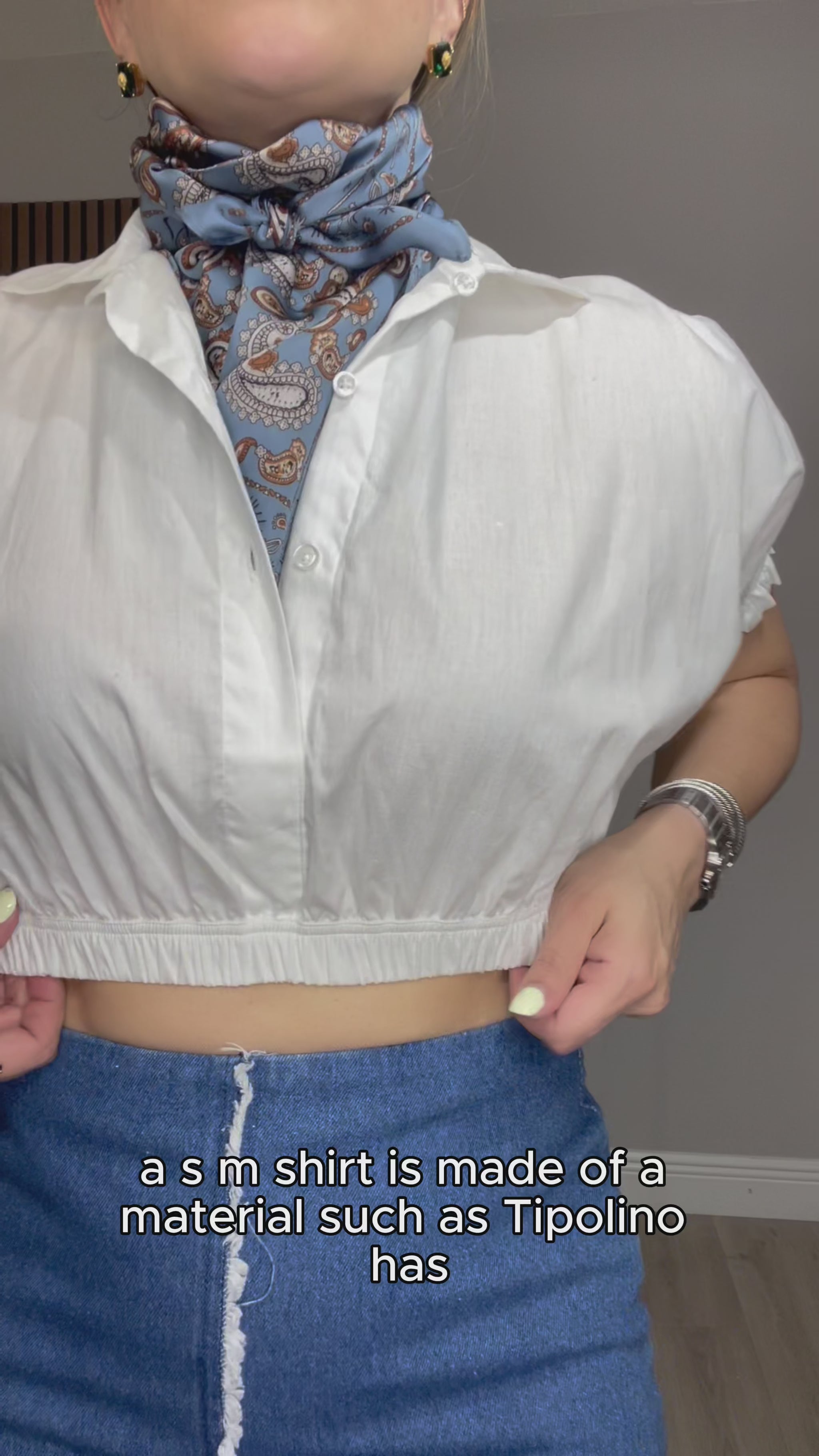 Chic white cropped blouse featuring a soft collared neckline and a flattering elastic waistband that enhances the silhouette. Designed with short puff sleeves and subtle elastic cuffs for a feminine touch. Lightweight and easy to style, this versatile piece pairs perfectly with high-waisted skirts or jeans for an effortless, polished look.
